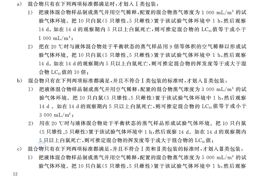 c)任何物质如在环境温度下遇水反应缓慢,释放易燃气体的最大速度大于或等于每千克物质每小时释放1L,并且不符合I类或Ⅱ类包装的标准,应划为Ⅲ类包装。