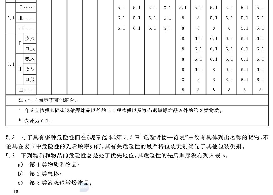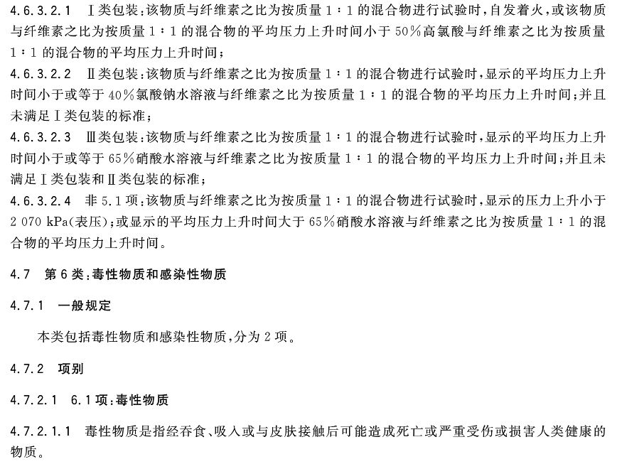 为了包装目的,除了第1类、第2类、第7类、5.2项和6.2项物质,以及4.1项自反应物质以外的物质,根据其危险程度,划分为三个包装类别: